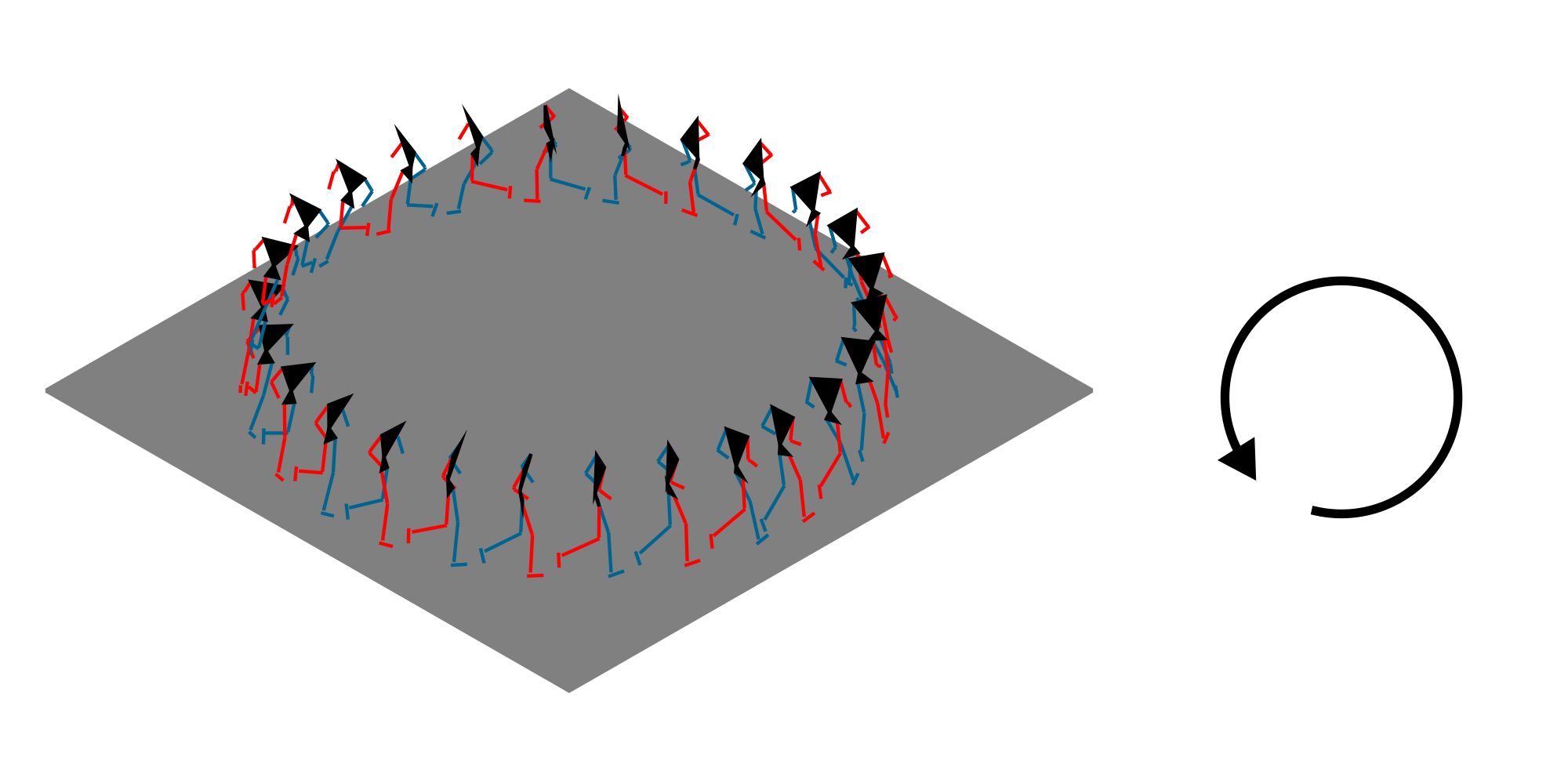 In biomechanical motion analysis, trajectory optimization can be used for two purposes: reconstruction of measured movements and prediction of changes in movement in response to environmental changes. Trajectory optimization of musculoskeletal models enable an exhaustive analysis of various motion variables like joint angles, joint moments, ground reaction forces or muscle activation. In addition to straight walking and running, it is important to also simulate movements with changes in direction due to their relevance to daily activities and sports. However, the simulation of movements with directional changes, e.g. curved running, requires detailed three dimensional models which lead to a high-dimensional solution space. Within this paper, we extended a full-body three dimensional musculoskeletal model to be specialized for running with directional changes. Model dynamics were implemented implicitly and trajectory optimization problems were solved with direct collocation to enable efficient computation. Standing, straight running, and curved running were simulated starting from a random initial guess to confirm the capabilities of our model and approach: efficacy, tracking and predictive power. Read more!