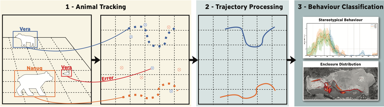 Are male polar bears more prone to signs of stress under human care than females? At what time of day do polar bears struggle to find peace? And are there seasons when polar bears just want to chill? To answer these questions, we developed an automated system to detect stress-related behaviours under human care. Our publication on this is now online! See https://doi.org/10.1016/j.ecoinf.2024.102840.